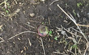 今日、庭を見ていたら、ちょこんと緑色の頭を出している植物を発見。