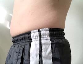 初めから比較すると下にたるんでいた肉が少なくなってきた。